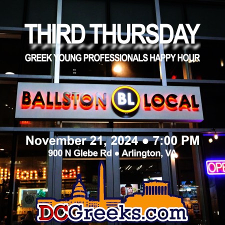 Join us on Thursday, November 21, 2024 at 7:00 PM as the Third Thursday Greek Young Professionals Happy Hour series visits Ballston Local in Arlington, VA. Located in the heart of Ballston, Ballston Local is a vibrant neighborhood hangout, featuring gameday food and drink specials during Thursday Night Football games. This particular night's match-up features the Steelers at the Browns, which should be of interest to numerous Midwestern members of our community who now call the DC area home.