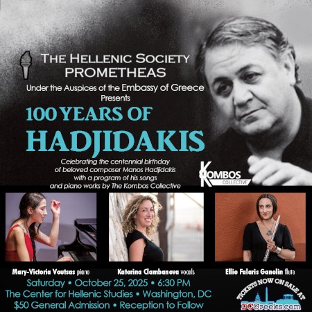 The Hellenic Society Prometheas Under the Auspices of the Embassy of Greece Presents 100 Years of Hadjidakis