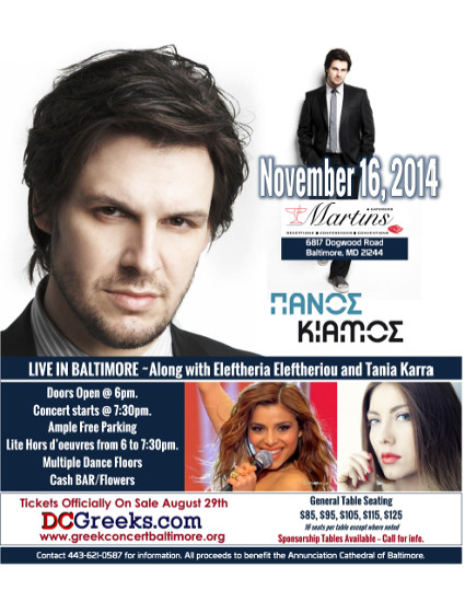 located directly next to Martin’s West. Call (410) 281-1111 and use Group “Greek Concert Baltimore”