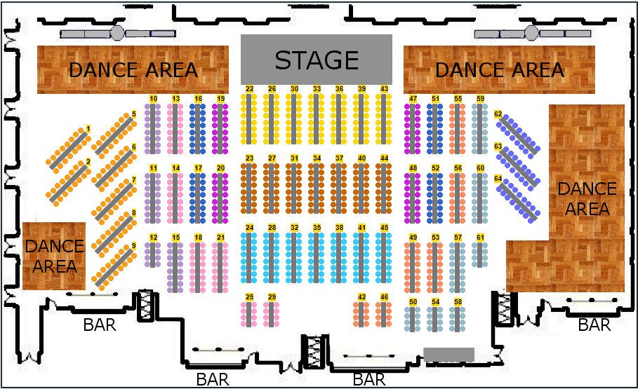 - 1st Row: $5000/Table | 2nd Row: $4000/Table | 3rd Row: $3000/Table