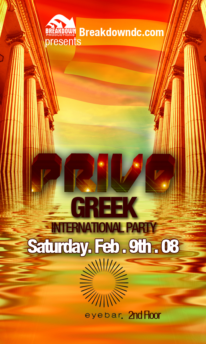 BREAKDOWNDC.COM PRESENTS " PRIVE" GREEK NIGHT (2008 EDITION) @ EYEBAR(2ND FLOOR VIP) FEAT. THE SOUNDS OF DC'S HOTTEST GREEK DJ: DJ MIXALIS//FREE ADMISSION ALL NIGHT W/ BREAKDOWNDC GUESTLIST OR PRINTOUT OF FLYER