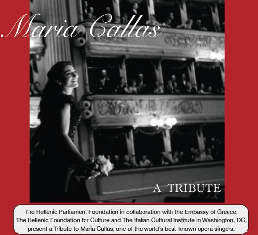 The Hellenic Parliament Foundation in collaboration with the Embassy of Greece, The Hellenic Foundation for Culture and The Italian Cultural Institute in Washington, DC, present a Tribute to Maria Callas, one of the world’s best-known opera singers.