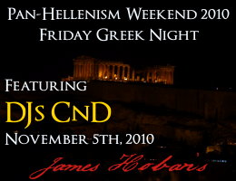 For full details including a schedule of events, registration packages, hotel information, list of cosponsoring organizations (and how to become one), and the latest up-to-date info, visit the DCGreeks.com Pan-Hellenism Weekend 2010 Page at: http://www.DCGreeks.com/PanHellenismWeekend