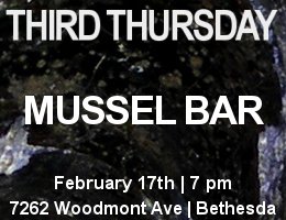 Mussel Bar by Robert Wiedmaier in Bethesda is the site for February, 2011's Third Thursday on February 17, 2011 starting at 7:00 PM.  Mussel Bar specializes in mussels & frites and wood-fired tarts (Belgian pizzas) with seasonal toppings.  Come enjoy their vast selection of Belgian and other beers and wine.