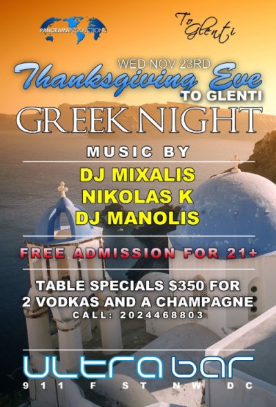 To Glenti Thanksgiving Eve Greek Night at ultrabar