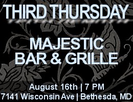 Join us on Thursday, August 16, 2012 at 7 PM at The Majestic Bar & Grille in Bethesda, MD for this month's Third Thursday. Opened in early 2012, this Greek-owned gastro-pub features an old-style bar with a pub fare menu which includes unique items such as ox-tail wontons and bison or duck sliders.