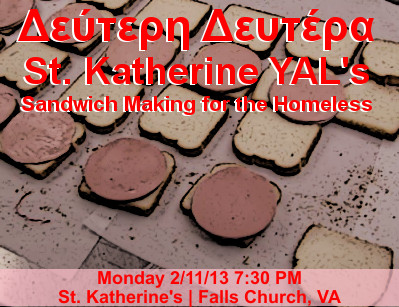 Please join us on Monday February 11, 2013 for our monthly Deuteri Deutera sandwich-making for the homeless event at 7:30 PM in the kitchen of the Meletis-Charuhas Center.