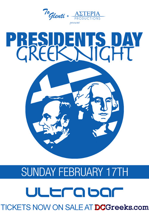 To Glenti & Asteria Productions Present PRESIDENTS DAY GREEK NIGHT at Ultrabar Presidents Day Weekend | Sunday February 17, 2013 Featuring Live Bouzoukia by Melodia