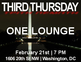 Join us on Thursday, February 21, 2013 at 7 PM at One Lounge Kitchen and Cocktail Bar in Dupont Circle for this month's Third Thursday. Opened in 2009 in a building built in 1850, Greek-owned One Lounge features locally-sourced cuisine and craft cocktails.