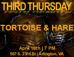 Join us on Thursday, April 18, 2013 at 7 PM at Tortoise & Hare Bar and Grille in Arlington, VA for this month's Third Thursday. Opened in August, 2007 in the historic restaurant row of Crystal City, Tortoise & Hare features a neighborhood bar atmosphere, great food, and live music on Thursday nights.