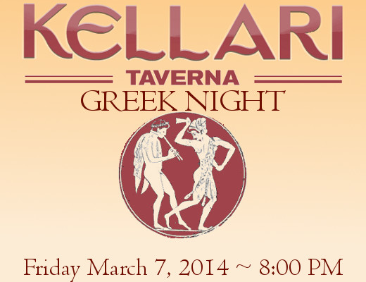 After taking a break in February, Kellari's First Friday of the Month Greek Night returns to its regularly scheduled date. Join us on Friday March 7th, 2014 for a fun evening of authentic Greek music, food and dancing!