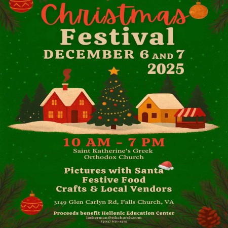 St. Katherine Greek Orthodox Church invites you to its 2025 Christmas Festival, Saturday, December 6 and Sunday, December 7 in Falls Church, VA. Click here for details!