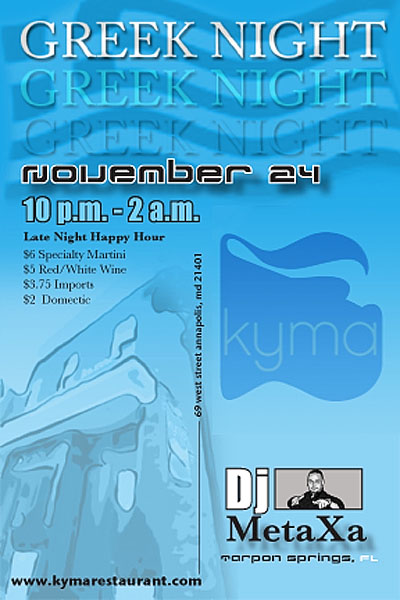 Greek Night & Late Night Happy Hour at KYMA (Annapolis, MD)