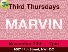 Please join us on Thursday, November 20th at Marvin at 7 pm for this month's Third Thursday event! Marvin, named after Marvin Gaye's infamous two years of exile in Belgium, combines great soulful music, multiple levels, over 30 Belgian ales, and food classics including Steak Frites, Grilled Bronzino, and the all-American classic, Country Fried Chicken and Waffles! Damn that's good. Where: Marvin, 2007 14th St, NW, Washington, DC Deals, level where we'll meet, and more details coming in the days ahead! Looking forward to seeing you there. Sincerely, Tia, Eleni & George