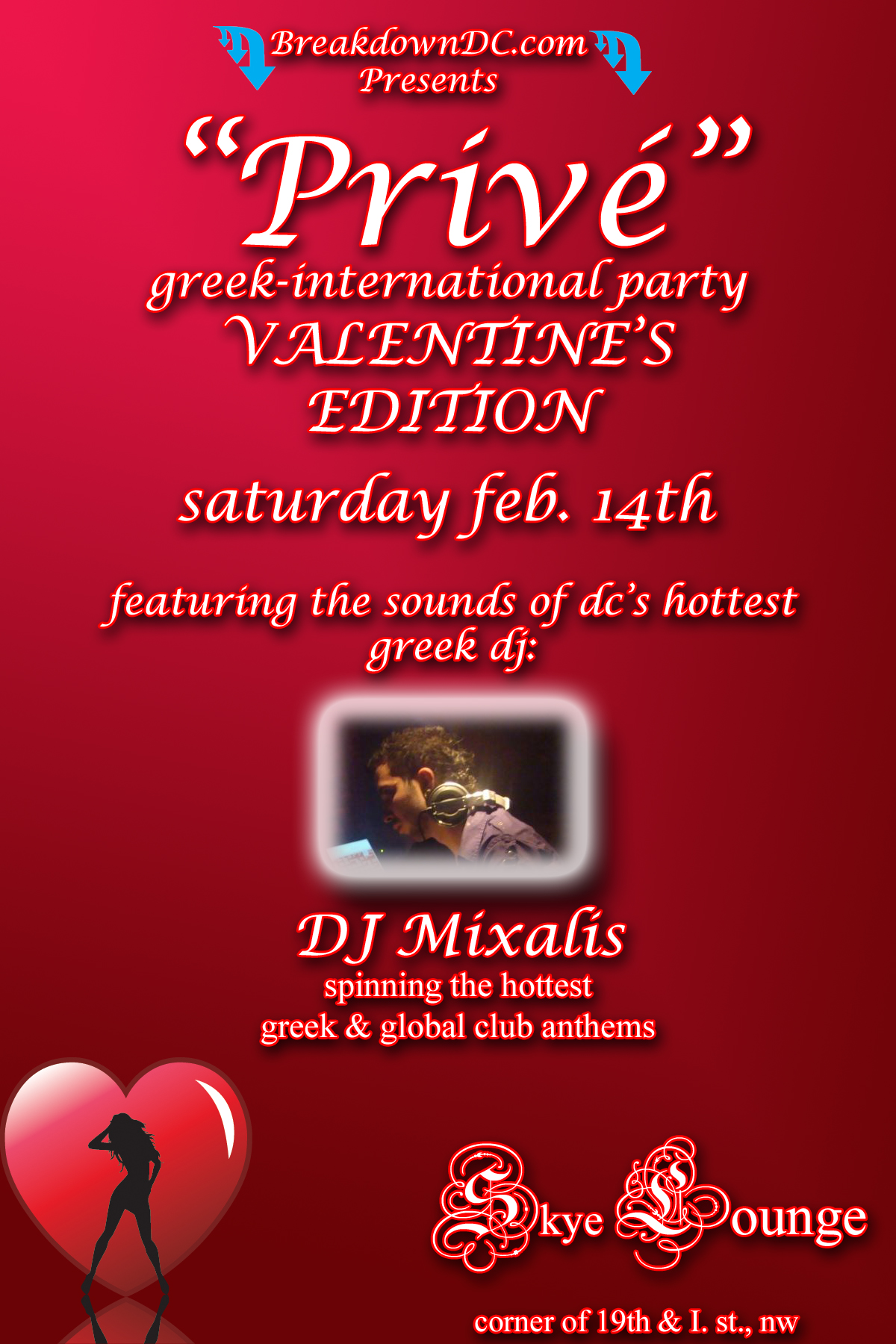 BreakdownDC Presents DC'S OFFICIAL GREEK NIGHT ::-::“Privé” Greek Party::-:: Valentine's Edition @ Skye Lounge::-::Sounds By: Dj Mixalis::-::Guestlist & Table Reservations Highly Recommended!!!