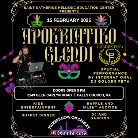 Saint Katherine Hellenic Education Center Invites You to its Apokriatiko Glendi 2025 featuring a Special Guest Performance by Internationally Known DJ Golden Feta