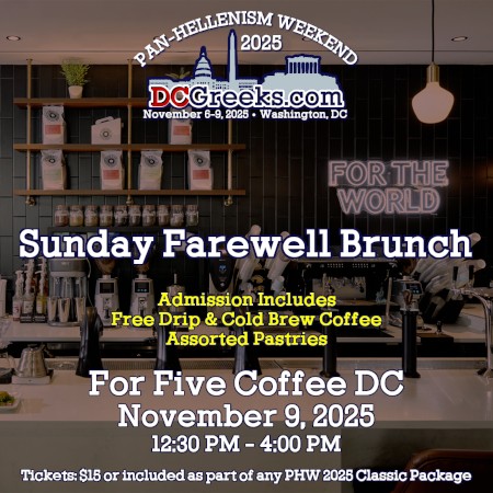 For full details including a schedule of events, registration packages, hotel information, list of cosponsoring organizations, and the latest up-to-date info, visit the DCGreeks.com Pan-Hellenism Weekend 2025 Page at: https://www.DCGreeks.com/PanHellenismWeekend
