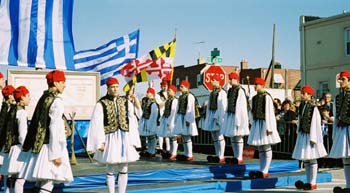 GREEK INDEPENDENCE DAY PARADE Sunday, April 3, 2005 -- Parade starts at 2:00 PM in Baltimore's Greektown BALTIMORE, MARYLAND- Colorful, traditional costumes and ethnic pride of both young and old will fill the streets of Baltimore on SUNDAY, APRIL 3, 2005, 2:00 PM, as the Greek-American Community commemorates Greek Independence Day with a festive parade in Baltimore’s historic Greektown. The committee organizing this year’s parade, remark, "We are pleased to see the enthusiasm this 10th YEAR ANNIVERSARY EVENT has generated, not only in Baltimore, but also in the surrounding Mid-Atlantic region. We have groups participating from as far away as Ocean City, Hagerstown, and Frederick, Maryland, from Washington, D.C., Falls Church and Fredericksburg, Virginia and also Lancaster and York, Pennsylvania. We honor our ancestors’ sacrifices that freed, protected and preserved the ideals of Greece, the birthplace of Freedom and Democracy, which shaped the entire world. This Parade recognizes this Legacy of Greece and our Spirit in America: Freedom and Democracy for All This event is celebrated in every corner of the world and we bare the responsibilities as our Greek and Philhellenic forefathers did to further this Legacy. We welcome one and all — especially, our children, inheritors of our traditions and future guarantors of these ideals."