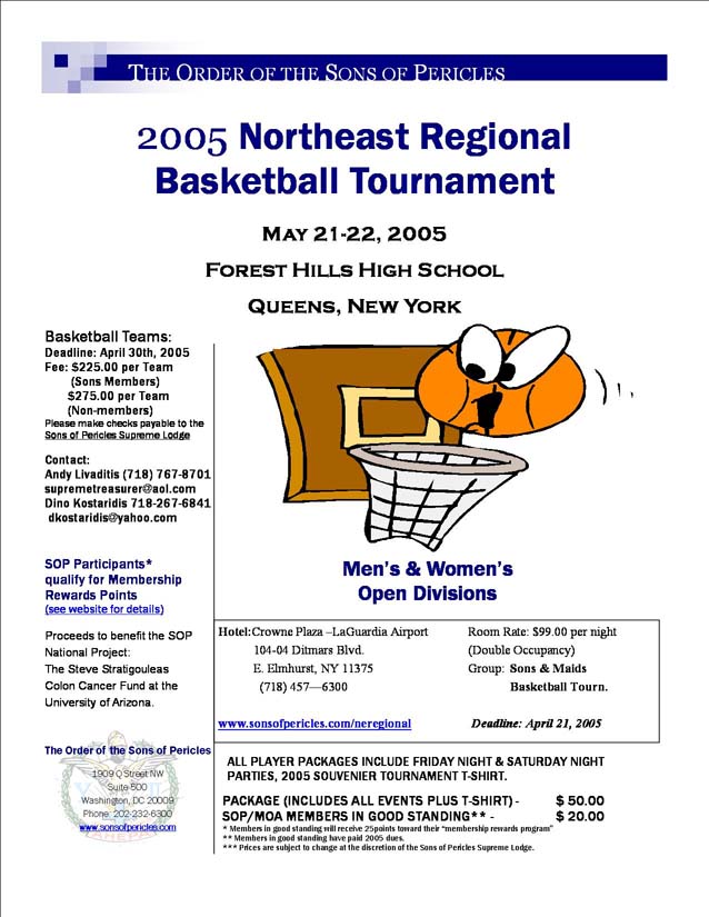 The National Sons of Pericles are hosting the Northeast Regional Sons of Pericles Basketball Tournament in Queens, NY. All proceeds go to benefit the Steve Stratigouleas Cancer Research Fund at the University of Arizona. We want to bring up a few teams from the DC area so we can win this tournament. Men and Women welcome, and membership in the Sons of Pericles or Maids of Athena is not a requirement.