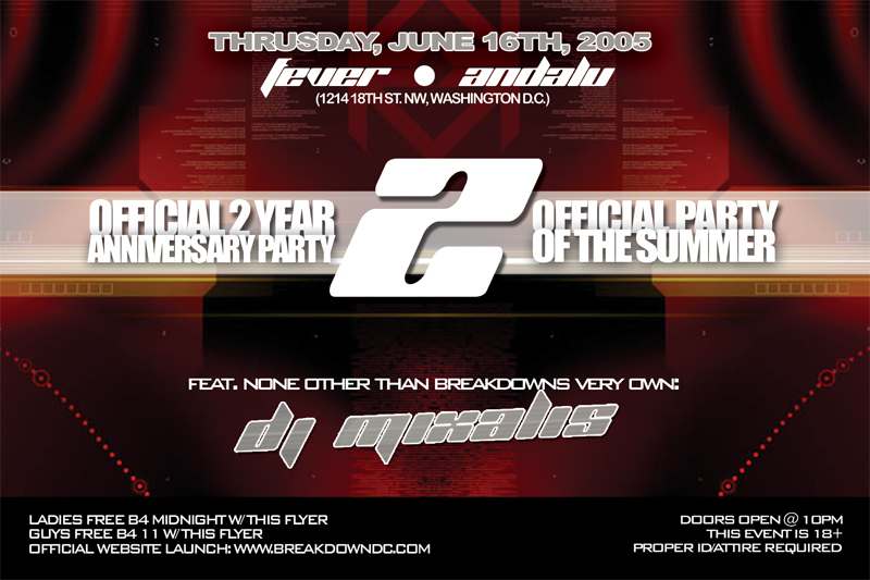 “FEVER” @ ANDALU ( BREAKDOWN PRODUCTIONS OFFICIAL 2 YEAR ANNIVERSARY & DC’S OFFICIAL SUMMER PARTY Open bar from “COME OUT & CELEBRATE BREAKDOWN PRODUCTIONS 2 YEARS IN DC’S NIGHTLIFE ENTERTAINMENT” FEAT. NONE OTHER THAN BREAKDOWNS VERY OWN DJ MIXALIS (BREAKDOWN,XO) *ALL LADIES ON THE GUESTLIST FREE B4 *ALL GUYS ON THE GUESTLIST FREE B4 *FOR GUESTLIST: [email protected] doors open @ 18 to party, 21 to drink