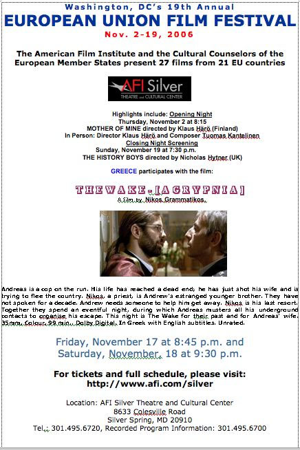 Andreas is a cop on the run. His life has reached a dead end; he has just shot his wife and is trying to flee the country. Nikos, a priest, is Andrew’s estranged younger brother. They have not spoken for a decade. Andrew needs someone to help him get away. Nikos is his last resort. Together they spend an eventful night, during which Andreas musters all his underground contacts to organise his escape. This night is The Wake for their past and for Andreas’ wife. 35mm, Colour, 99 min., Dolby Digital. In Greek with English subtitles. Unrated.