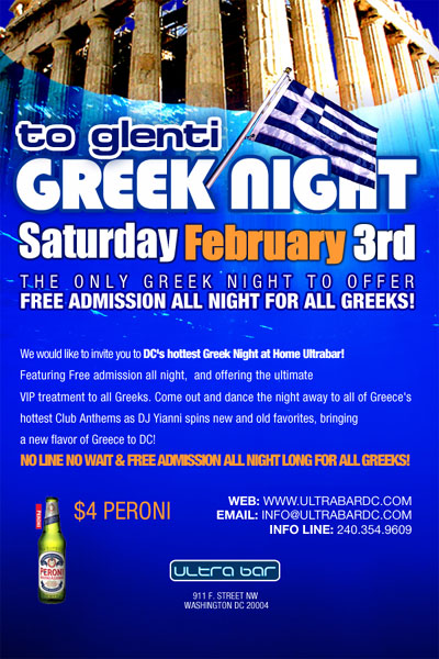 Panorama Productions would like to invite you to DC’s Hottest Greek Night at Home Ultra Bar!  Featuring Free Admission all night and offering the ultimate VIP treatment to all Greeks!  Come out and dance the night away to all of Greece's hottest Club Anthems as DJ Yianni spins new and old favorites, bringing a new flavor of Greece to DC!
