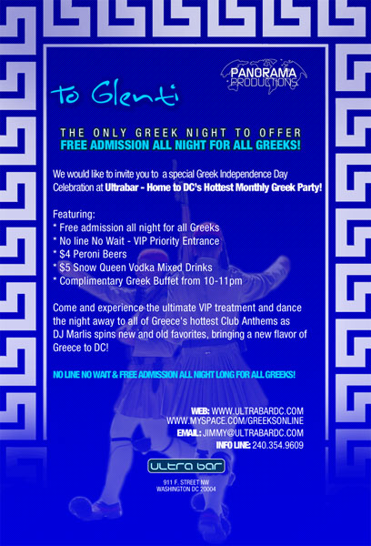 Panorama Productions would like to invite you to a special Greek Independence Day Celebration at Ultrabar -- Home to DC's Hottest Monthly Greek Party!
