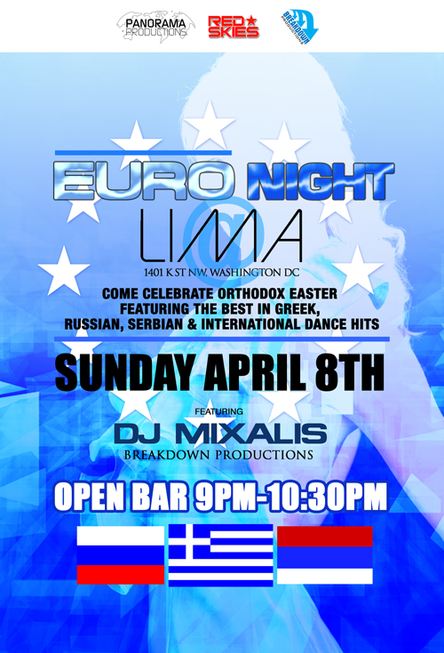 Panorama Productions,Breakdown Productions & Red Skies Present "Euro Night" Greek Easter Celebration @ Lima//Feat. Dj Mixalis//Open Bar 9-10:30//No Cover Charge