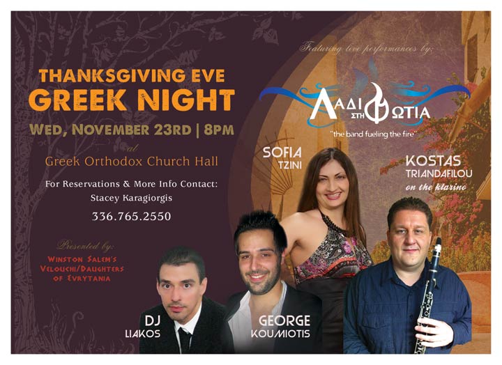 Pre-Thanksgiving Greek Night Annunciation Greek Orthodox Church Winston Salem, NC featuring Ladi Sti Fotia hosted by Velouchi/Daughters of Evrytania