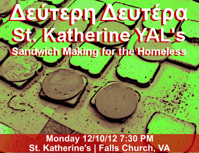 Please join us on Monday December 10, 2012 for our monthly Deuteri Deutera sandwich-making for the homeless event at 7:30 PM in the kitchen of the Meletis-Charuhas Center.