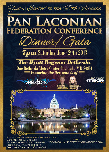 The Laconian Society of Greater Washington, DC invites you to the 65th Annual Pan Laconian Dinner Gala, featuring the live sounds of Melodia with Christos Alexandrou & Konstandina Skalioti