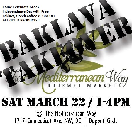 On Saturday March 22, 2014 from 1 - 4 PM come experience a BAKLAVA TAKEOVER at The Mediterannean Way Gourmet Market 1717 Connecticut Ave NW • Washington, DC