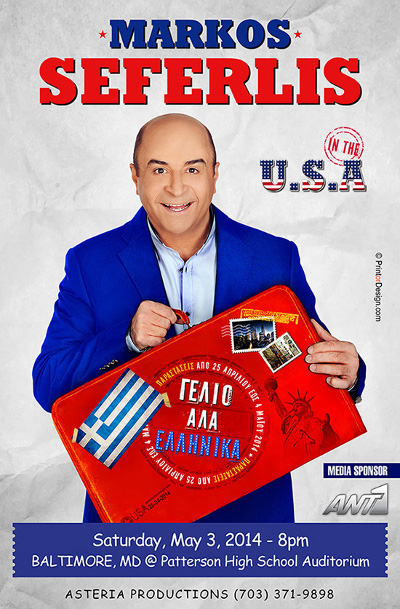 Syn-Phonia Inc presents Markos Serfelis Gelio Ala Ellinika Live in Baltimore at Patterson High School Auditorium