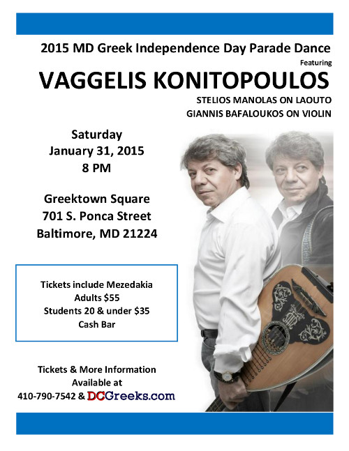 All Proceeds to Benefit the Maryland Greek Independence Day Parade.