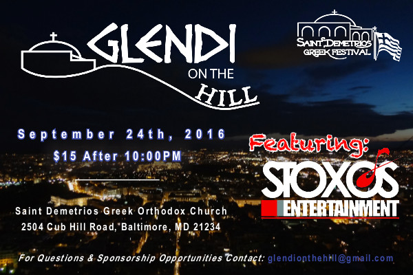 Don't let the fun of the St. Demetrios Greek Festival come to an end! The St. Demetrios Demetrakia Dance Groups Invite you to... Glendi on the Hill Featuring Live Music by