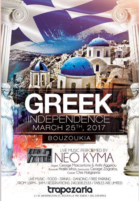 Greek Independence Day 2017 at Trapezaria Featuring Live Music by Neo Kyma