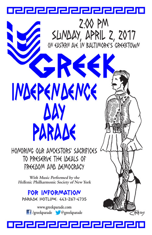 April 2, 2017, at 2:00 PM, as the Greek-American Community commemorates Greek Independence Day with a festive parade in Baltimore's historic Greektown.