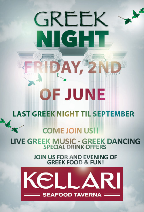 wine, live Greek music and dancing at Kellari's Monthly Greek Night!
