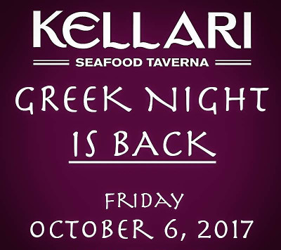 wine, live Greek music and dancing as Kellari's Monthly Greek Night returns from its summer hiatus!