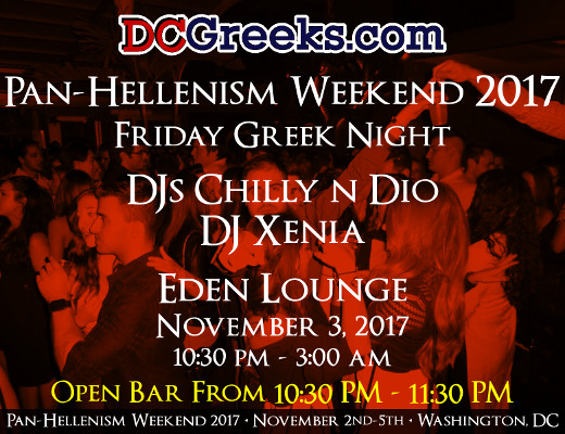 For full details including a schedule of events, registration packages, hotel information, list of cosponsoring organizations (and how to become one), and the latest up-to-date info, and pictures from previous PHWs, visit the DCGreeks.com Pan-Hellenism Weekend 2017 Page at: https://www.DCGreeks.com/PanHellenismWeekend