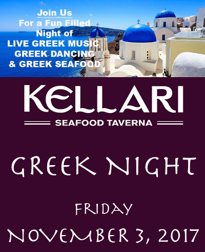 Join us on Friday, November 3, 2017 for a memorable night with authentic Greek food,