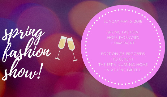 The Hellenic Society of Constantinopolitans Invites you to join us at a Spring Fashion Show at Bloomingdale's in Tysons Corner Center Just in time for Mother's Day! Watch your favorite brands on the catwalk, while sipping complementary champagne and nibbling on hors d'oeuvres provided by Nostos Restaurant and Plaka Grill and more! Sunday, May 6th, 2018 Tysons Corner Center Tickets: $15 (Purchase online via Eventbrite) A portion of ticket sales plus 10% of purchases made by ticketholders will benefit the ESTIA nursing home in Athens, Greece.