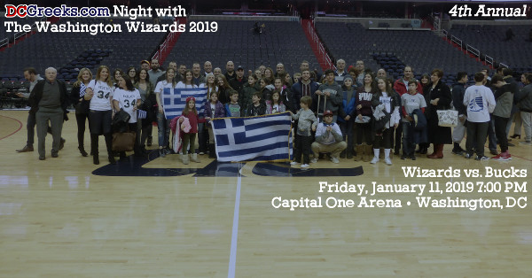 Friday, January 11, 2019 7:00 PM DCGreeks.com invites you to the Capital One Arena on Friday, January 11, 2019 at 7:00 PM to watch the Washington Wizards take on "Greek Freak" Giannis Antetokounmpo and the Milwaukee Bucks for our 4th Annual DCGreeks.com Night with the Washington Wizards. We have reserved a block of 290 tickets across seven sections (Sections 116-118, 224, 430-432) starting as low as $21 per ticket! Purchasing discounted tickets in our DCGreeks.com block gets you