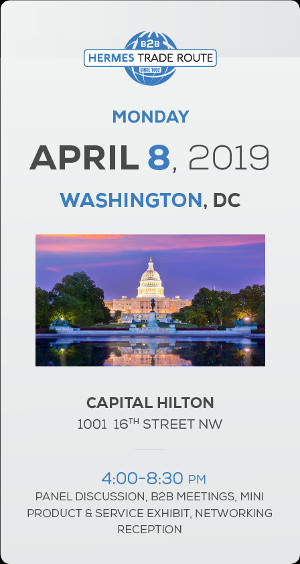 Hermes Trade Route: Washington, DC Hermes Expo International will present a panel discussion with experts in Importing-Exporting, Tourism, knowledgeable people of Greek Specialty foods, B2B meetings, a mini product & services exhibit, and a networking reception with professionals and businesses that are looking to expand their business potential. Leading Sponsors: Sigmapharm Laboratories, Green Crown Energy Advisors, American Network Solutions, The Nerantzis Group at Merrill Lynch, Jules & Melina Recordings, Mikel Coffee Company, Region of Ionian Islands, Chamber of Trikala, Chamber of Larisa and Chamber of Kavala B2B Meetings Registration Form Register Now for Hermes Expo 2019 in Washington, DC ABOUT HERMES EXPO: A series of events held annually in New York, Philadelphia and now in Washington, DC, the Hermes Expo combines executive and exclusive level networking opportunities, professional development seminars, educational panels and a trade show exhibition platform for professionals and businesses seeking to grow and expand. Hermes Expo events attract business leaders from diverse industries and professional services. Hermes Expo events feature unique platforms for companies to showcase their products and services in front of potential customers from the United States and Europe. Hermes Expo brings together Greek American and American owned business from various industries Hospitality industry, Banking & Finance, Insurance, Legal Services, Investment Opportunities, Foodservice Distribution, New Technology Importers and Exporters and more. Hermes Expo also organizes the “Taste of Hellas”, the Hermes Expo Awards Dinner & Entertainment and awards scholarships to students of Hellenic descent.