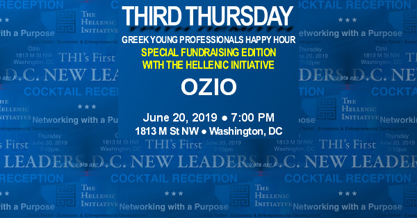 Thursday, June 20, 2019 Join The Hellenic Initiative at our Inaugural New Leaders event in Washington, DC! We are excited to share more information with you about our work in Crisis Relief and Economic Development in Greece. We look forward to a fun evening of meeting one another over some drinks and nibbles on the rooftop of Ozio while we support our mission to provide crisis relief and economic development to the Greeks in Greece. THI New Leaders are an international group of like-minded professionals 21-40 years of age who actively believe in investing in the future of Greece through direct philanthropy and economic revitalization. New Leaders are Greeks and Philhellenes of the Diaspora who are passionate about working together (Oli Mazi) to fundraise, donate their time, resources, skills and expertise in helping to build a better future for Hellas. Anyone under 40 who has engaged with THI via social media, attendance at an event, or a donation is considered a New Leader. For more information on The Hellenic Initiative's work, please visit our news page. Tickets