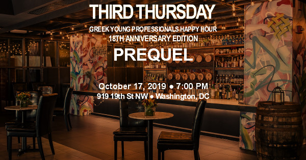 Join us on Thursday, October 17, 2019 at 7:00 PM at Prequel in Washington, DC as the Third Thursday Greek Young Professionals Happy Hour series celebrates its 18th anniversary of monthly happy hours!  As a happy hour series which visits bars of varying concepts each month, we thought it fitting to visit a venue whose premise is to give chefs a platform to try out new concepts as well, with pop-ups that can last from a night to three months!