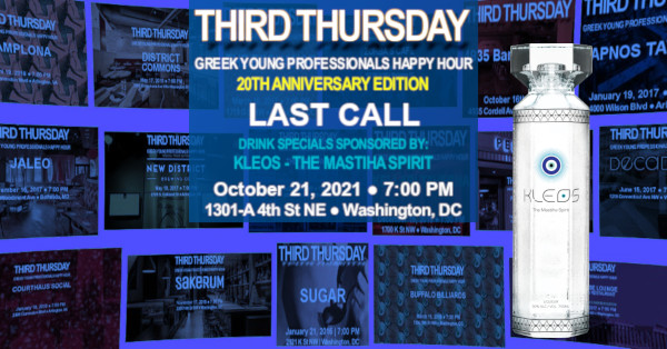 Join us on Thursday, October 21, 2021 at 7:00 PM as the Third Thursday Greek Young Professionals Happy Hour series celebrates its 20th Anniversary of monthly happy hours.  In honor of the occasion, we've decided to venture to a new neighborhood for Third Thursday, Union Market, and we've picked a pretty unique venue, Last Call, which features a vast selection of economically priced beers and cocktails in a casual setting.  We've also reached out to our friends at KLEOS - The World's First Super-Premium Mastiha Spirit to sponsor a number of signature cocktails.  (Check back in the days ahead for a full list of specials.)