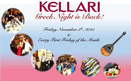 Join us on Friday, November 5, 2021 for a memorable night with authentic Greek food, wine, and dancing at the November 2021 edition of Kellari's Monthly Greek Night with live Greek music by Golden Flame!