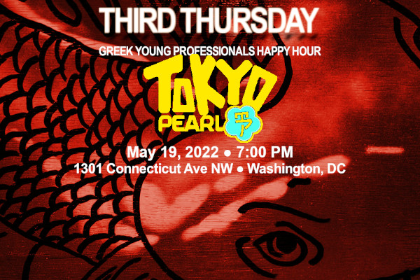 Join us on Thursday, May 19, 2022 starting at 7:00 PM as the Third Thursday Greek Young Professionals Happy Hour series visits Tokyo Pearl. Located on 1301 Connecticut Ave NW, south of Dupont Circle, Tokyo Pearl is a Japanese inspired sushi restaurant and high energy nightclub from Stephanos Andreou, founder of Sakerum and Semeli. We've arranged for Happy Hour specials to run until 10:00 PM, featuring an assortment of starters, classic rolls, wine, sake, cocktails from $7 to $9 each.