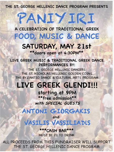 The St. George Hellenic Dance Program Presents Paniyiri A Celebration of Traditional Greek Food, Music & Dance Saturday, May 21, 2022 Live Greek Music & Traditional Greek Dance Performances By: